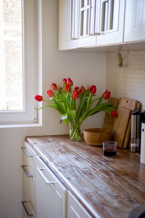 Kunst, Musik und frische Blumen. Wir haben immer wechselnde Arbeiten von Künstler*innen an unseren Wänden oder im Raum stehen. Außerdem haben wir im Wohn-, Ess- und Schlafzimmer Musikboxen stehen, über die wir mit unseren Handys verbunden sind und jederzeit Musik abspielen können. Und frische Schnittblumen gehören bei uns einfach auf den Tisch.