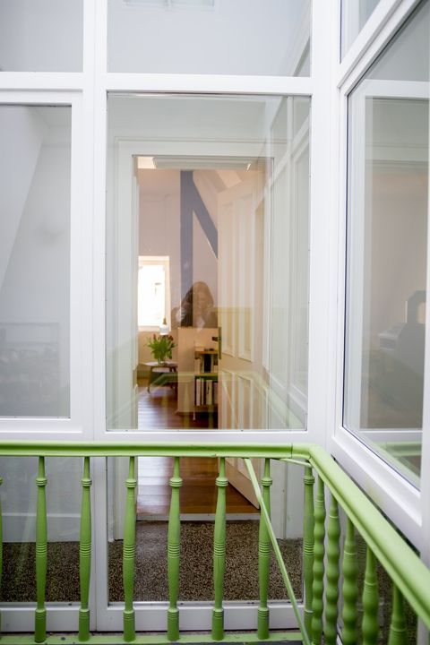 Der Eingangsbereich zur Wohnung ist einzigartig. Der grüne Hausflur geht quasi nahtlos in die Wohnung über und wird nur durch eine große Glasgalerie abgetrennt. Hierdurch entsteht bereits an der Tür das Gefühl, das man Willkommen ist.